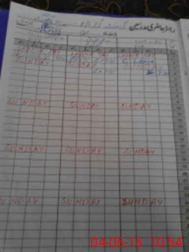 | CNIC | Full Name | Designation | R/C | Absence During Last Calender Month |