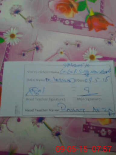 | School Visited by School Health & Nutrition Supervisor (No. of Visits) | 1 | Name1: | MUZAMMAL HUSSAIN | Name2: | |