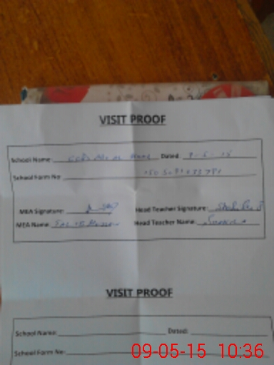 | Attendance Register | Head Teacher | MEA with School | Visit Proof |