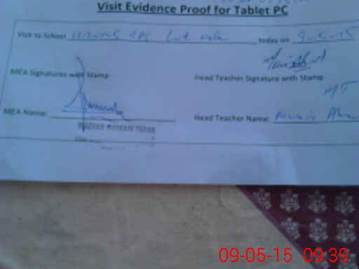 | Attendance Register | Head Teacher | MEA with School | Visit Proof |