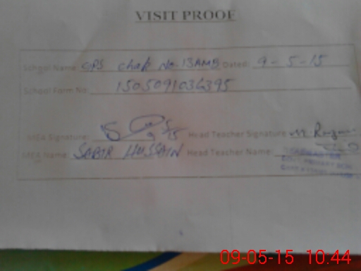 | EMIS Code: 38220079 | Name of School: GPS CHAK NO. 13-A/MB | |||