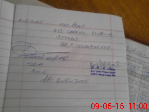 | Monitoring Date: 09-05-2015 | Start Time: 09-05-2015 10:32 AM | End Time: 09-05-2015 11:04 AM | Name of MEA: Za**** BN**** | |