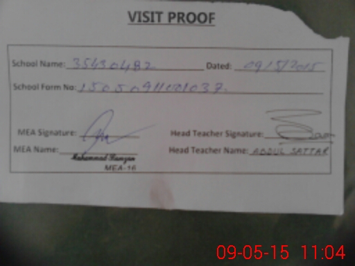 | Attendance Register | Head Teacher | MEA with School | Visit Proof |