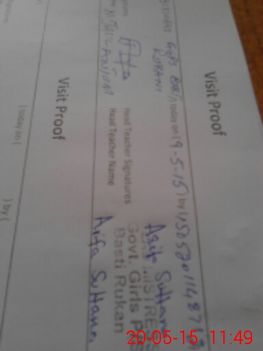 | School Visited by School Health & Nutrition Supervisor (No. of Visits) | 1 | Name1: | ZESHAN ASLAM | Name2: | |