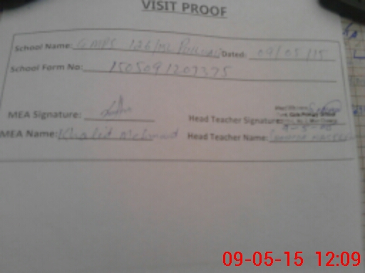 | Attendance Register | Head Teacher | MEA with School | Visit Proof |
