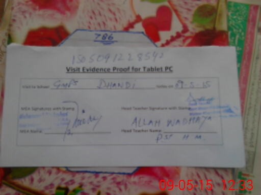 | Attendance Register | Head Teacher | MEA with School | Visit Proof |