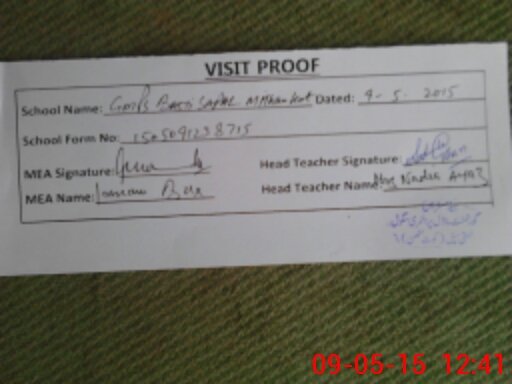 | School Visited by School Health & Nutrition Supervisor (No. of Visits) | 1 | Name1: | Samina Manzoor | Name2: | Nil |