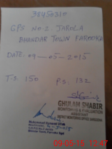 | District: SARGODHA | Tehsil: SAHIWAL | Markaz: FAROOQA - MALE | Level: Primary | |