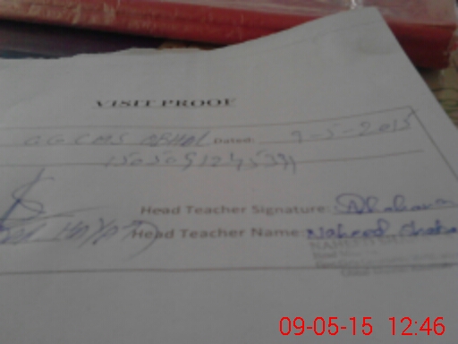 | Attendance Register | Head Teacher | MEA with School | Visit Proof |