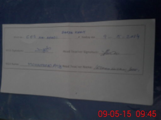 | Attendance Register | Head Teacher | MEA with School | Visit Proof |