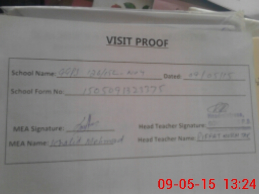 | Attendance Register | Head Teacher | MEA with School | Visit Proof |