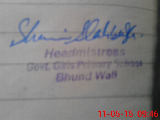 | EMIS Code: 31150324 | Name of School: GGPS BHAND WALI | |||