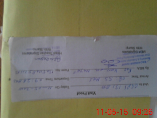 | Monitoring Date: 11-05-2015 | Start Time: 11-05-2015 08:52 AM | End Time: 11-05-2015 09:26 AM | Name of MEA: Kh**** Ha**** (R**** | |