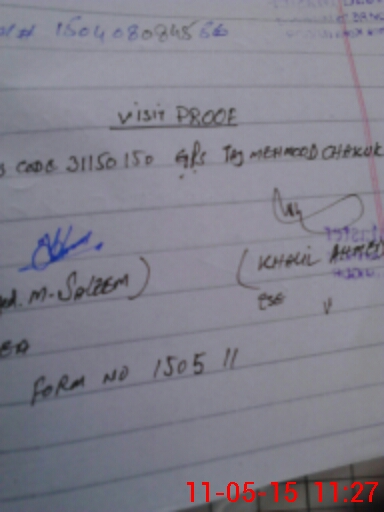 | Monitoring Date: 11-05-2015 | Start Time: 11-05-2015 11:19 AM | End Time: 11-05-2015 11:29 AM | Name of MEA: Mu**** Sa**** BN**** 33 | |