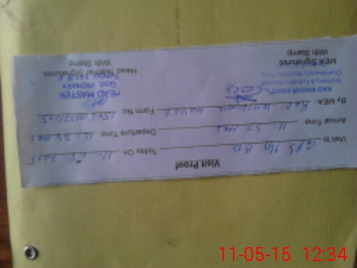 | Monitoring Date: 11-05-2015 | Start Time: 11-05-2015 11:37 AM | End Time: 11-05-2015 12:34 PM | Name of MEA: Kh**** Ha**** (R**** | |