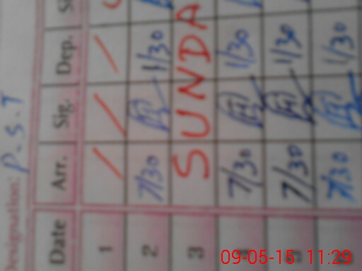 | Monitoring Date: 09-05-2015 | Start Time: 09-05-2015 11:09 AM | End Time: 09-05-2015 11:33 AM | Name of MEA: Ma**** Ah**** -S**** | |