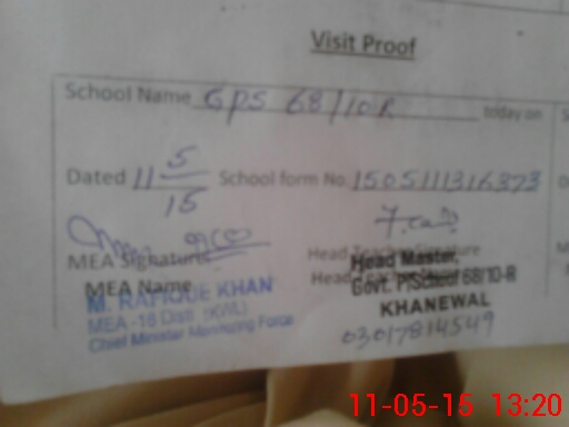| EMIS Code: 36420167 | Name of School: GPS 68/10-R, P/O 70/10-R, KHANEWAL | |||