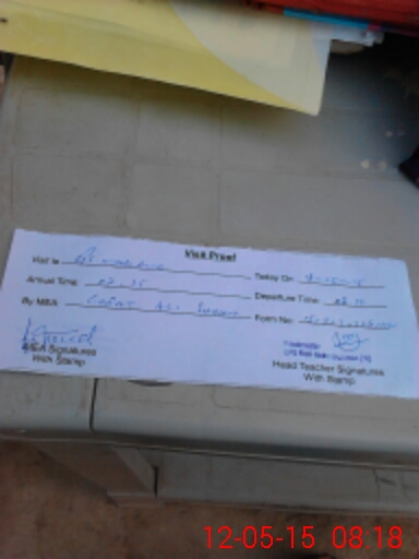 | Attendance Register | Head Teacher | MEA with School | Visit Proof |