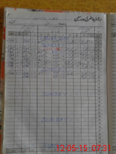 | CNIC | Full Name | Designation | R/C | Absence During Last Calender Month |