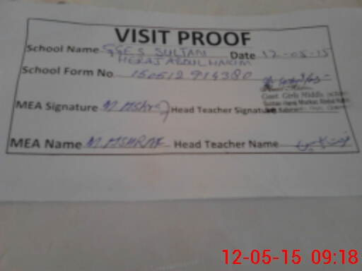 | Attendance Register | Head Teacher | MEA with School | Visit Proof |