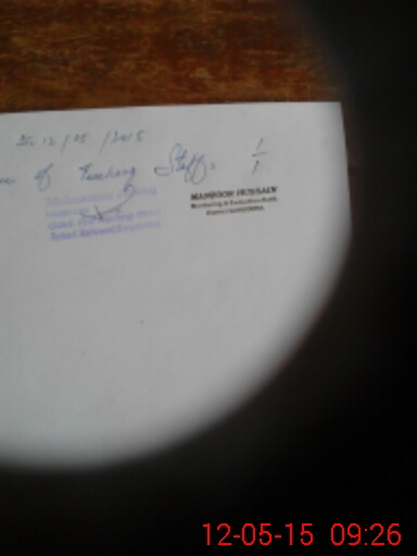 | Name: MU**** NA**** Designation: (School Headmaster's/Headmistress's) ESE Phone/Cell Number: 03**** |