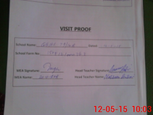 | Attendance Register | Head Teacher | MEA with School | Visit Proof |