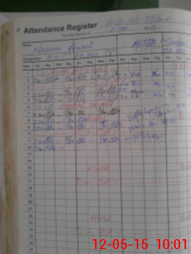 | CNIC | Full Name | Designation | R/C | Absence During Last Calender Month |