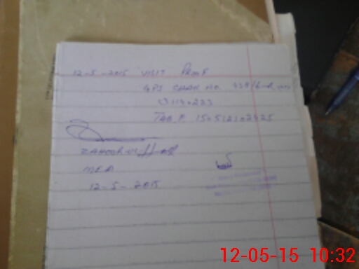 | Monitoring Date: 12-05-2015 | Start Time: 12-05-2015 10:01 AM | End Time: 12-05-2015 10:34 AM | Name of MEA: Za**** BN**** | |