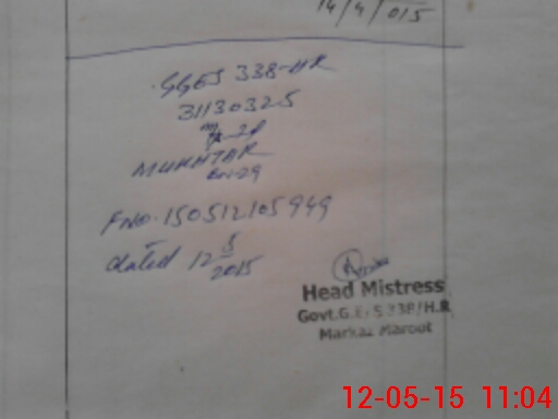 | EMIS Code: 31130325 | Name of School: GGES CHAK NO 338 HR | |||