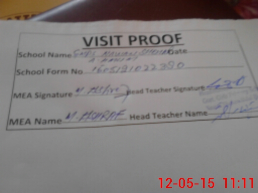 | Attendance Register | Head Teacher | MEA with School | Visit Proof |