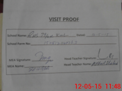 | School Visited by School Health & Nutrition Supervisor (No. of Visits) | 1 | Name1: | Suhail Ahmed | Name2: | |