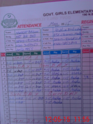| CNIC | Full Name | Designation | R/C | Absence During Last Calender Month |