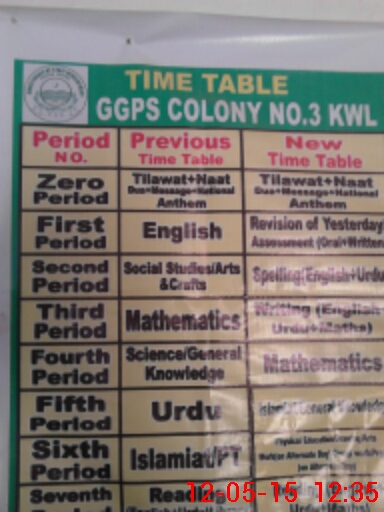 | EMIS Code: 36420358 | Name of School: GGPS COLONY NO.3 KHANEWAL | |||
