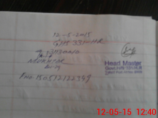 | Name: MMU**** Designation: (School Headmaster's/Headmistress's) S.S.T.(SC) Phone/Cell Number: 03**** |