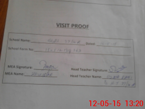 | Attendance Register | Head Teacher | MEA with School | Visit Proof |