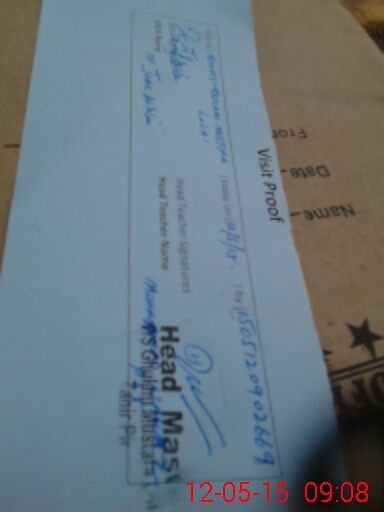 | School Visited by School Health & Nutrition Supervisor (No. of Visits) | 1 | Name1: | Irfan Mehmood | Name2: | Nil |