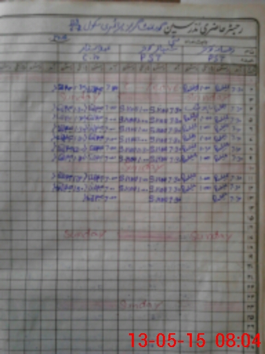 | CNIC | Full Name | Designation | R/C | Absence During Last Calender Month |