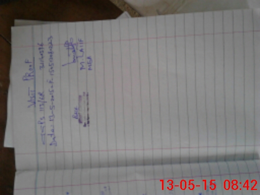 | School Visited by School Health & Nutrition Supervisor (No. of Visits) | 1 | Name1: | LUBNA RIAZ | Name2: | NIL |