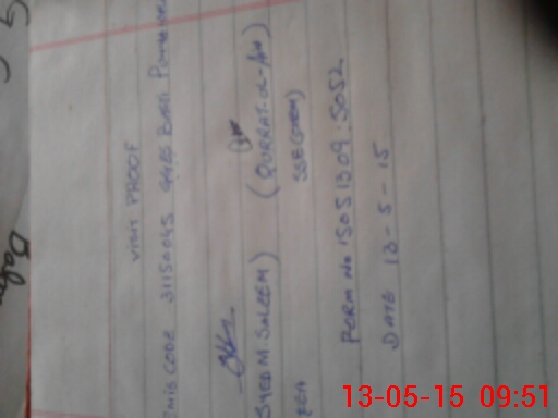 | Monitoring Date: 13-05-2015 | Start Time: 13-05-2015 08:59 AM | End Time: 13-05-2015 09:54 AM | Name of MEA: Mu**** Sa**** BN**** 33 | |