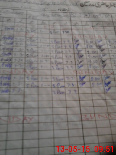 | CNIC | Full Name | Designation | R/C | Absence During Last Calender Month |