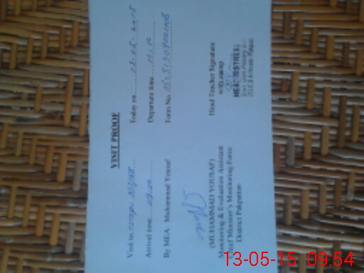 | Attendance Register | Head Teacher | MEA with School | Visit Proof |