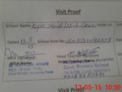 | EMIS Code: 36420667 | Name of School: GPS 74-A/15-L, KHANEWAL | |||