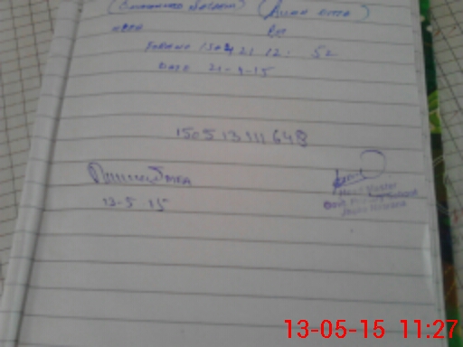 | Monitoring Date: 13-05-2015 | Start Time: 13-05-2015 11:05 AM | End Time: 13-05-2015 11:28 AM | Name of MEA: Ab**** Ra**** Am**** BN**** 28 | |