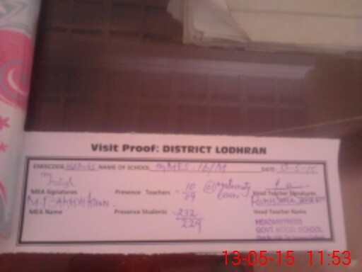 | Certified that this School was Inspected by the Undersigned MEA/DMO Today and the Information Stated Above is as Per Record. | |||||