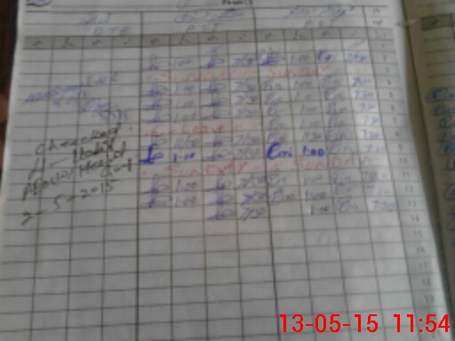 | Monitoring Date: 13-05-2015 | Start Time: 13-05-2015 11:37 AM | End Time: 13-05-2015 11:59 AM | Name of MEA: Ab**** Ra**** Am**** BN**** 28 | |