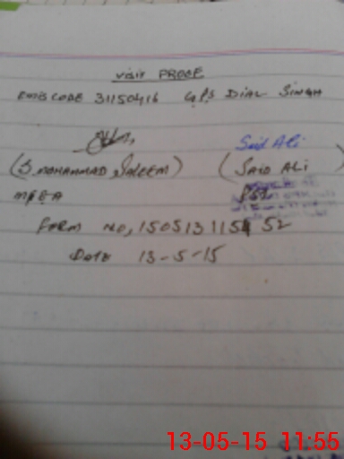 | Monitoring Date: 13-05-2015 | Start Time: 13-05-2015 11:21 AM | End Time: 13-05-2015 12:08 PM | Name of MEA: Mu**** Sa**** BN**** 33 | |