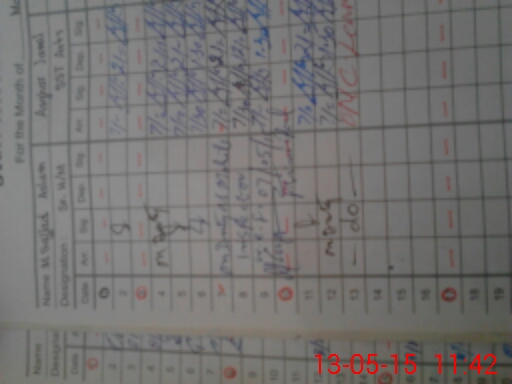 | CNIC | Full Name | Designation | R/C | Absence During Last Calender Month |