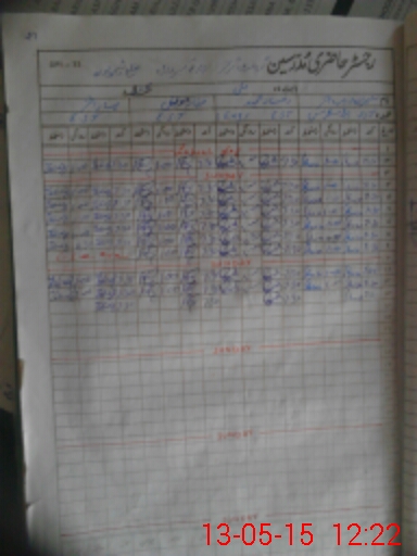 | CNIC | Full Name | Designation | R/C | Absence During Last Calender Month |