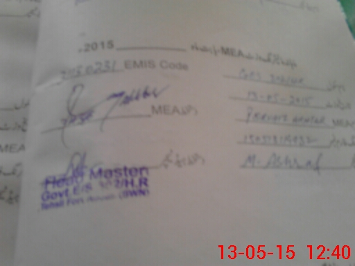 | Name: Al**** Hu**** Designation: (School Headmaster's/Headmistress's) EST Phone/Cell Number: 03**** |