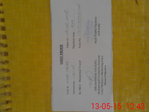 | Monitoring Date: 13-05-2015 | Start Time: 13-05-2015 12:05 PM | End Time: 13-05-2015 12:50 PM | Name of MEA: Mu**** Yo**** (D**** | |